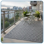Dywan tarasowy pozwala wizualnie wydzielić strefę wypoczynkową z sofą, fotelami lub stolikiem kawowym. Na balkonie dywan może całkowicie odmienić charakter przestrzeni i sprawić, że stanie się ona bardziej przytulna.