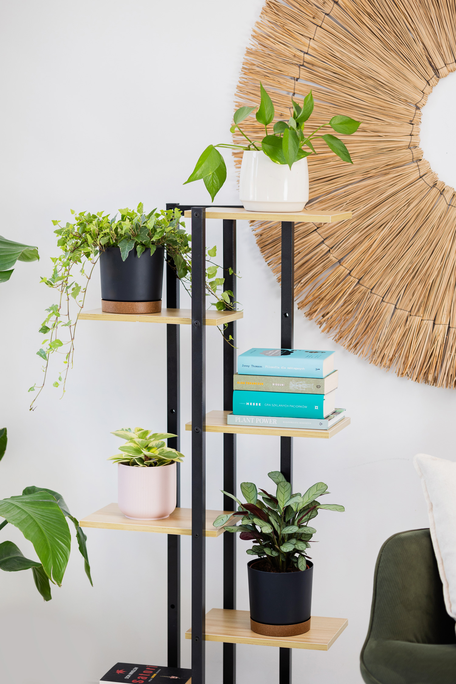 Z łatwością zmontujesz go w kilka chwil. Solidna i szeroka podstawa zapewnia stabilność kaskadzie roślin doniczkowych. To nie tylko praktyczny dodatek, ale także elegancki stojak na kwiaty, który przyciąga uwagę. Stworzysz nie tylko kaskadę, ale również całą zieloną ścianę w swoim domu. Przekształć swoją przestrzeń w kolorowy raj roślin doniczkowych! Rozmieszczenie poziomów w kwietniku jest dokładnie przemyślane, dzięki czemu żadna doniczka nie pozostanie w cieniu! Podlewanie nawet sporej ilości roślin nie będzie stanowiło problemu.