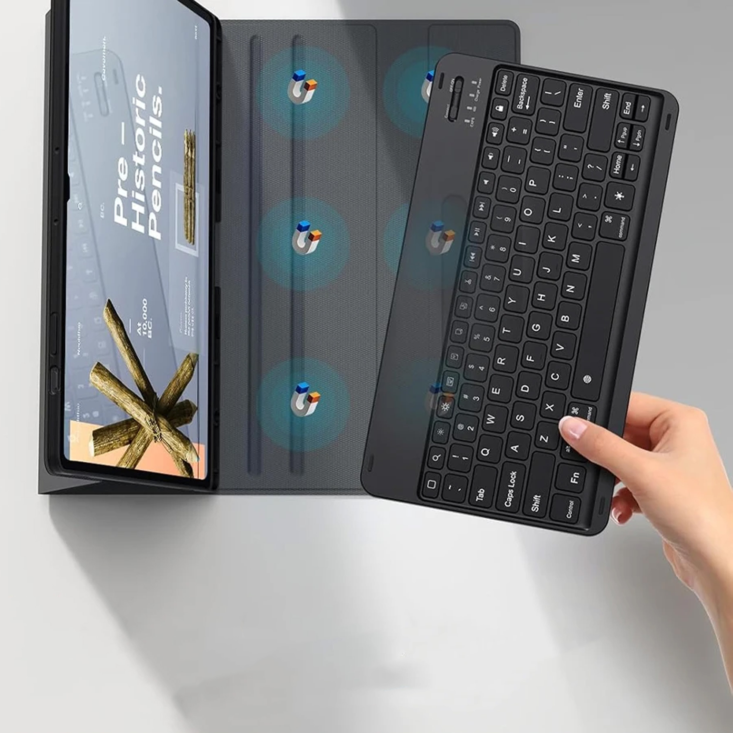 - Magnetyczne mocowanie klawiatury
