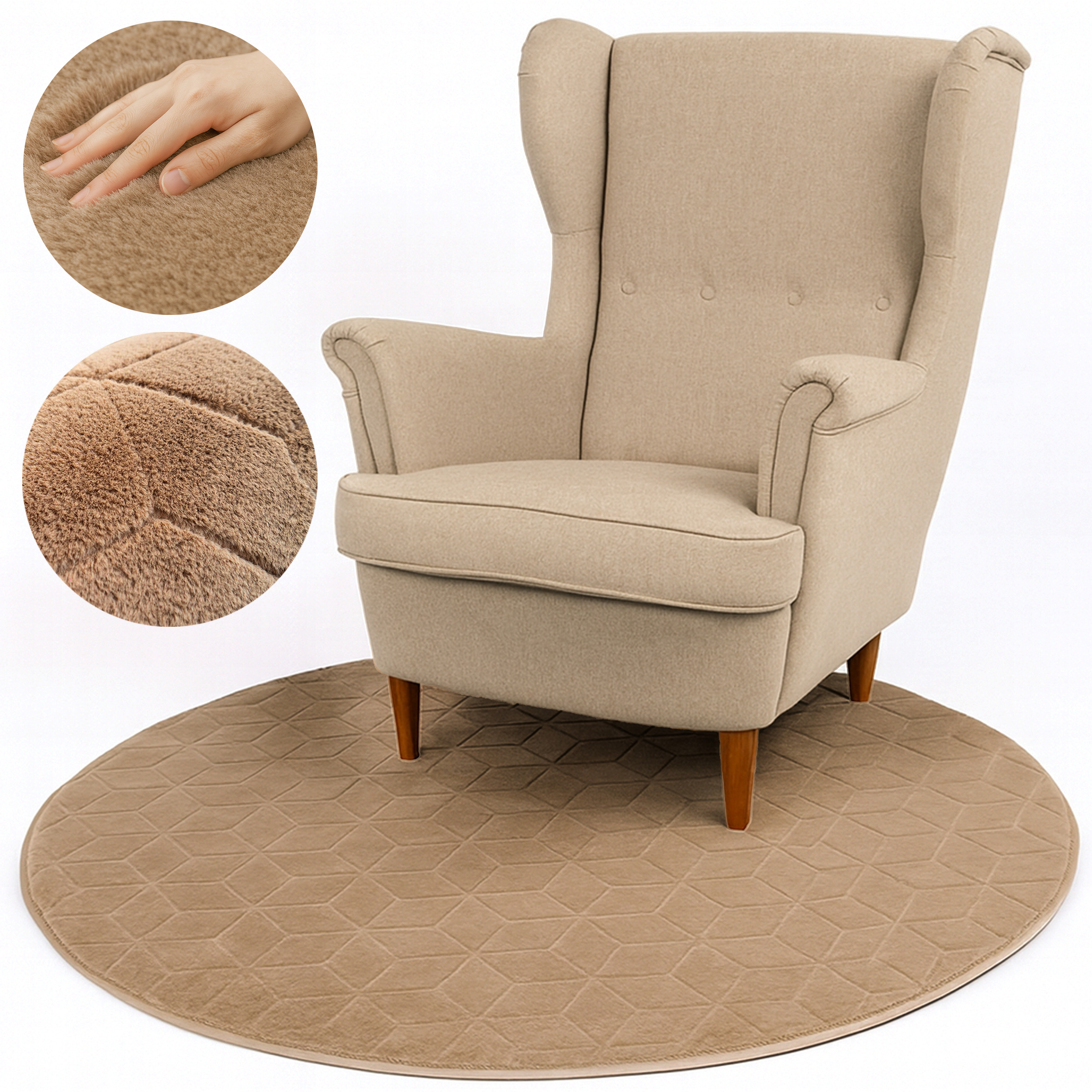 Okrągły Dywan STRADO Rabbit 3D – 200x200 Beige
