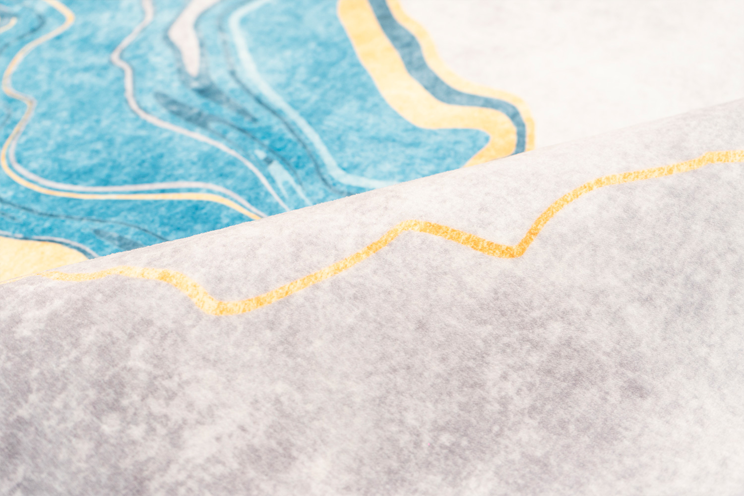 - Nowoczesny dywan 160x200 cm z kolekcji NOVO Strado. Wzór Złoty Szlak łączy turkus i złoto, tworząc elegancki marmurowy efekt. Idealny do salonu lub sypialni. Miękki, trwały i łatwy w utrzymaniu czystości.