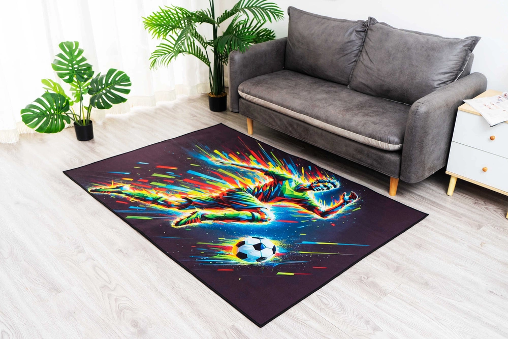 - Optymalny rozmiar 100x150 cm – świetnie pasuje pod łóżko, biurko lub strefę relaksu młodego fana futbolu,