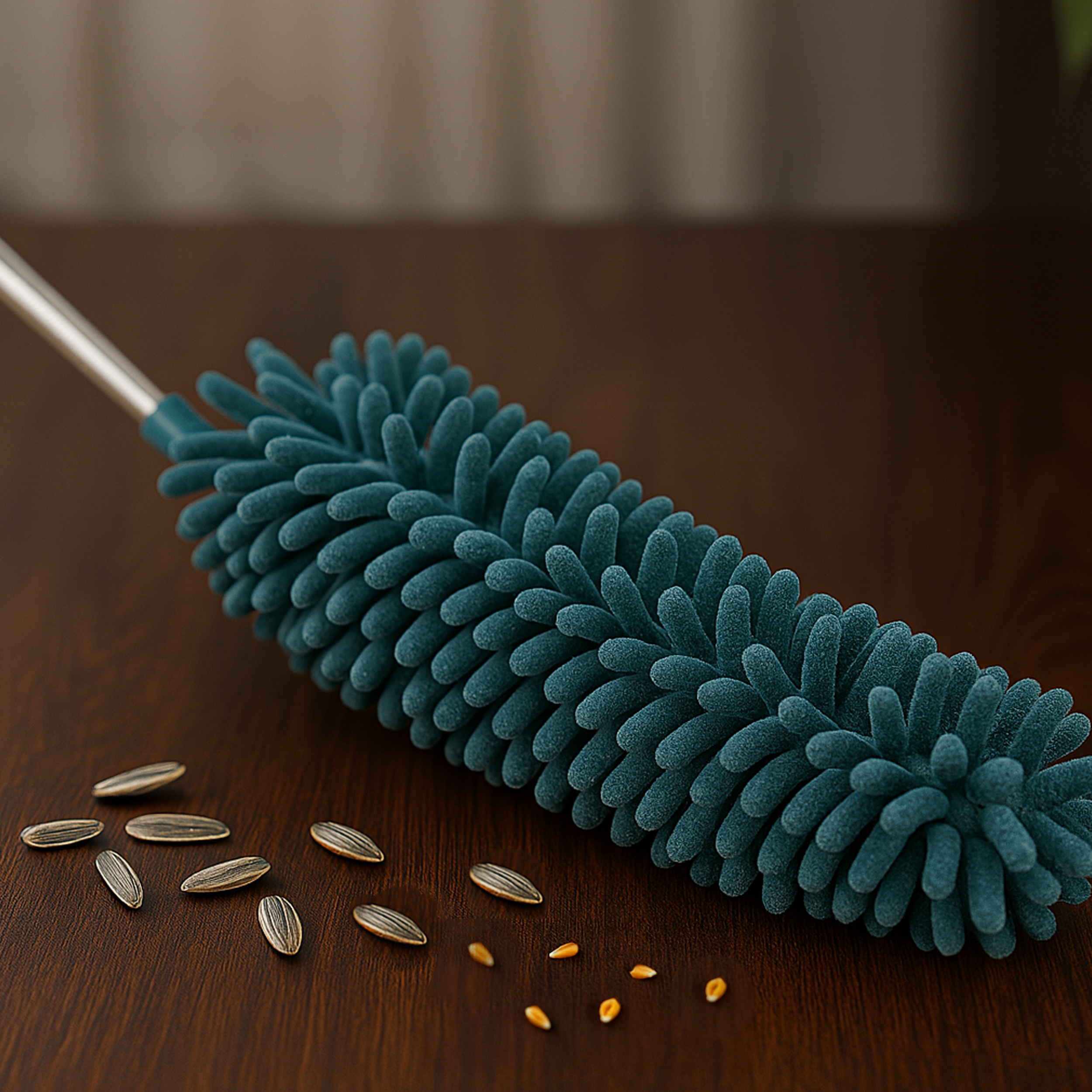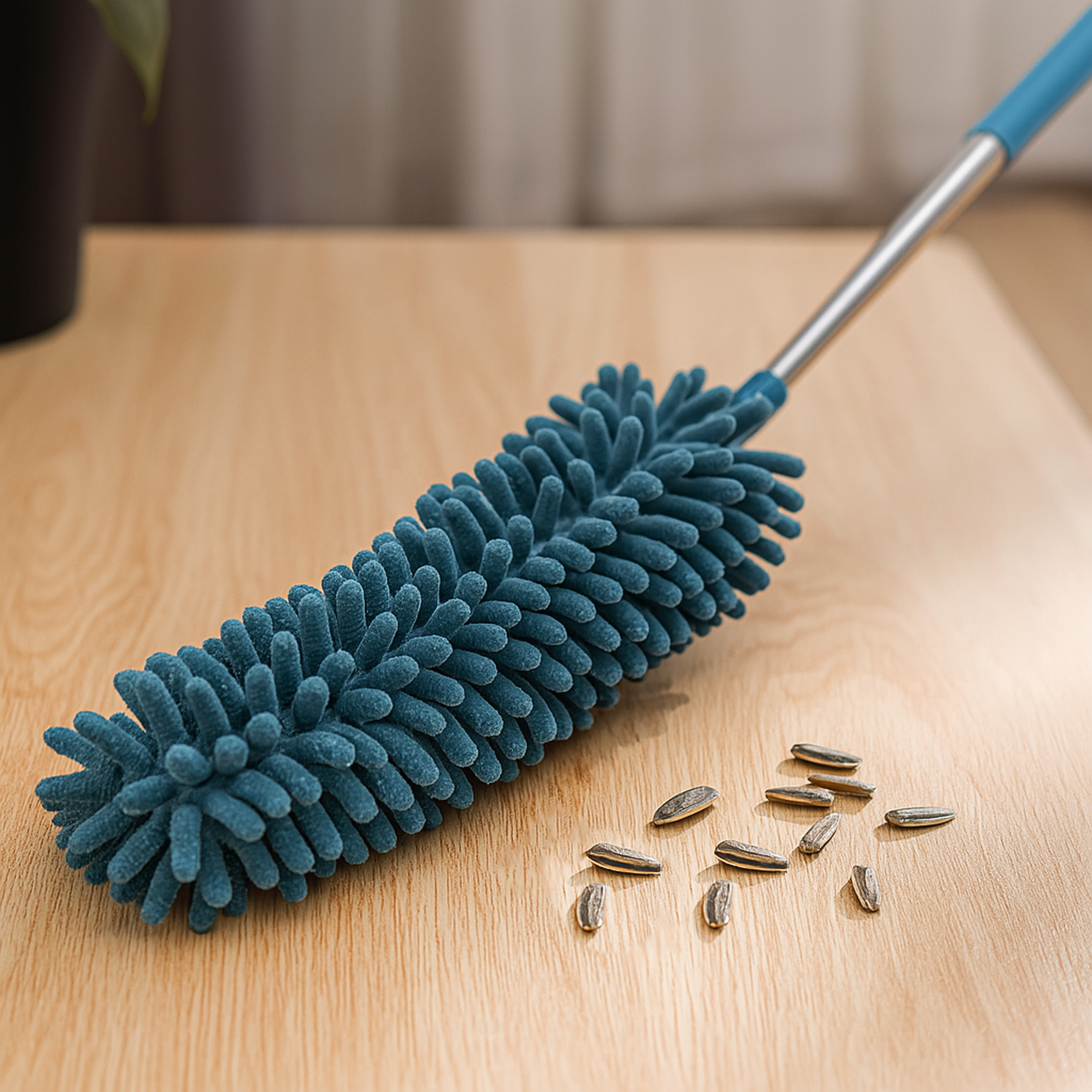 Nasza teleskopowa miotełka to must‑have w każdym domu! Dzięki wysuwanej rączce sięgającej aż 95 cm oraz pluszowym włóknom z mikrofibry usuwa kurz nawet z trudno dostępnych miejsc – bez ryzyka uszkodzenia powierzchni.