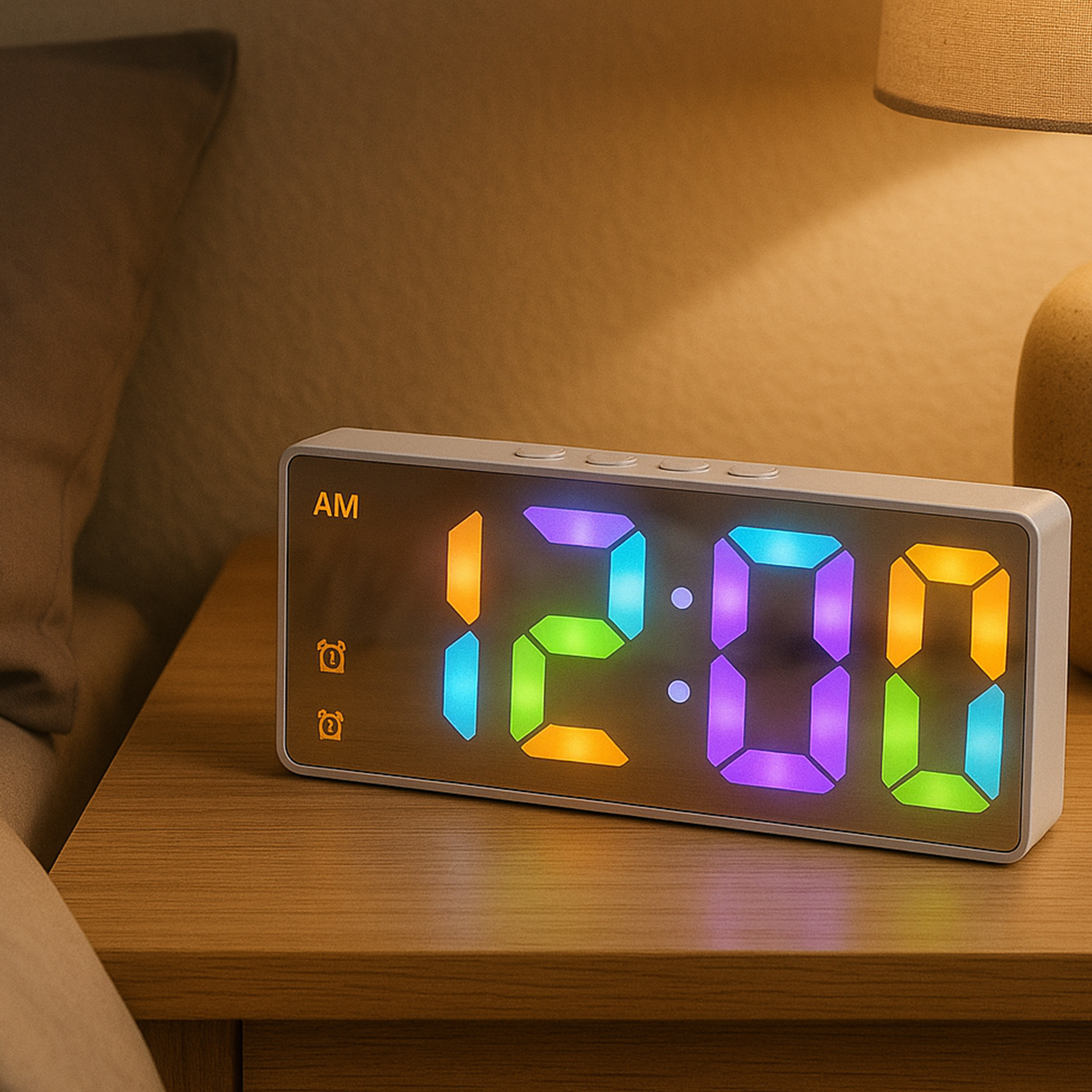 Zegar elektroniczny LED z budzikiem i alarmem – duży wyświetlacz, 12/24h, cichy