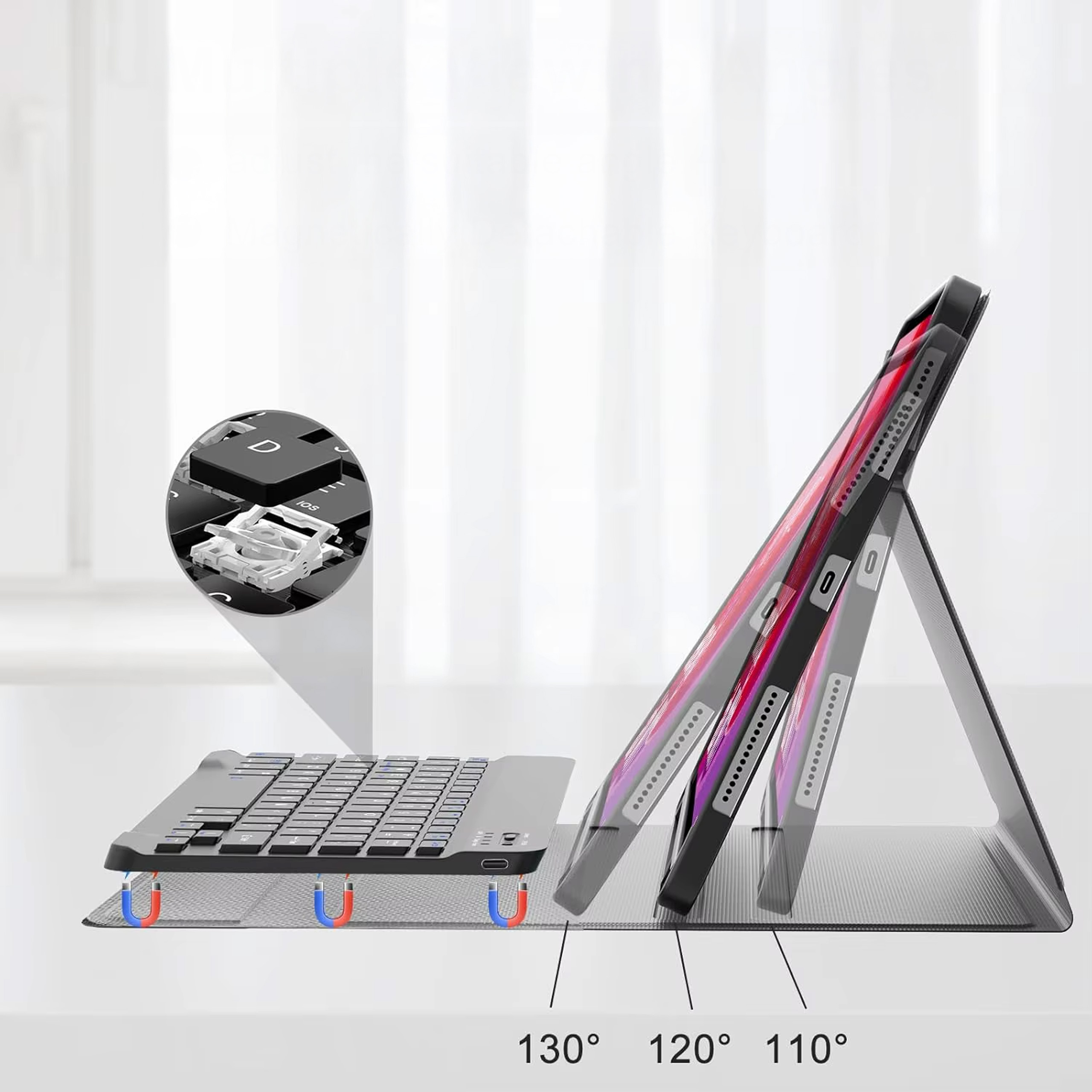 - Magnetyczne mocowanie klawiatury – szybkie i stabilne podpięcie