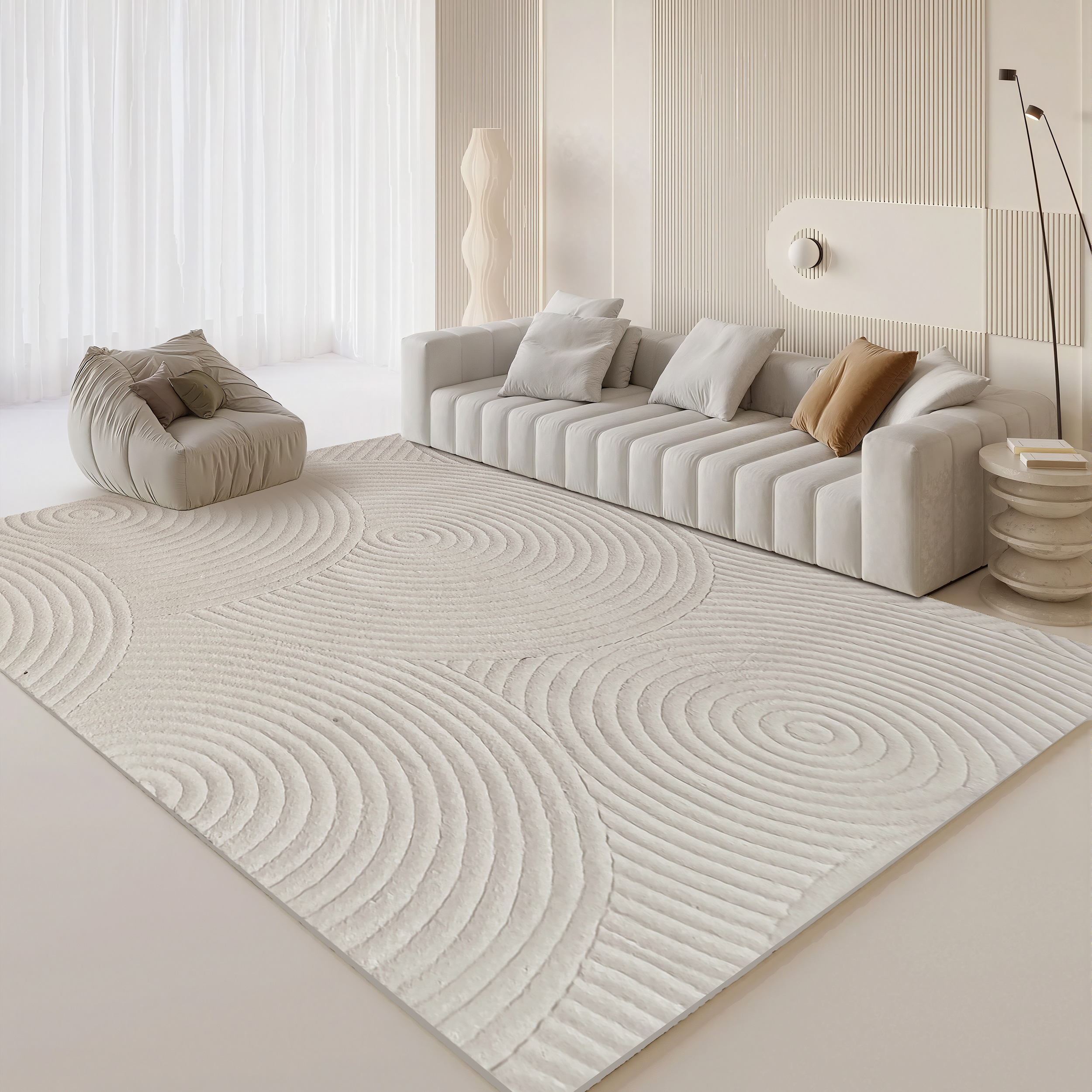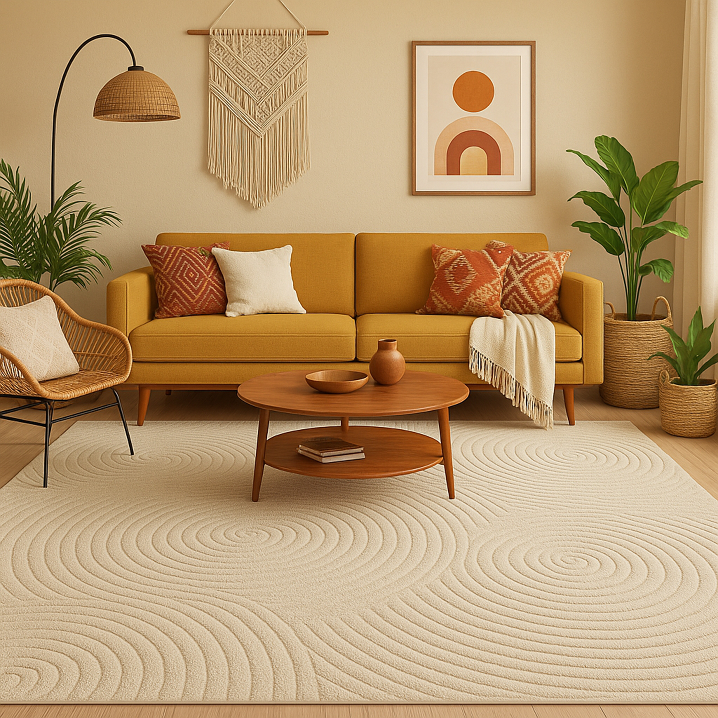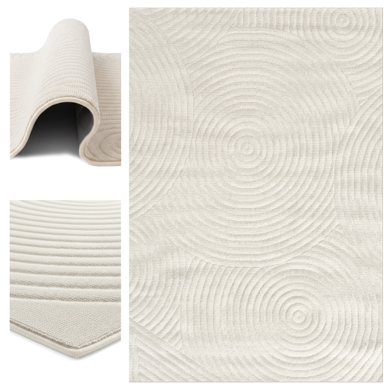 - Duży format dywanu idealnie wypełnia otwarte przestrzenie, wydzielając strefę relaksu.
