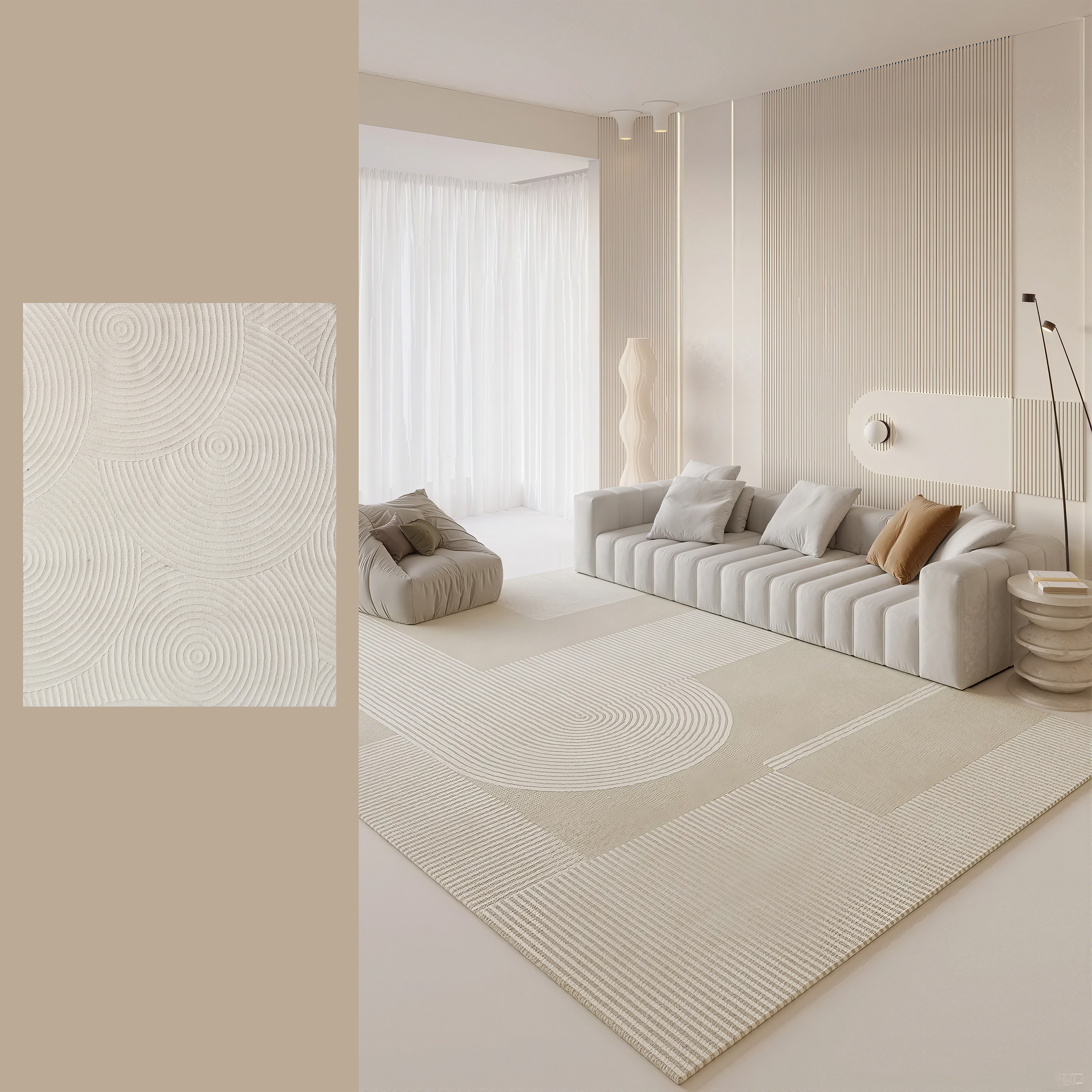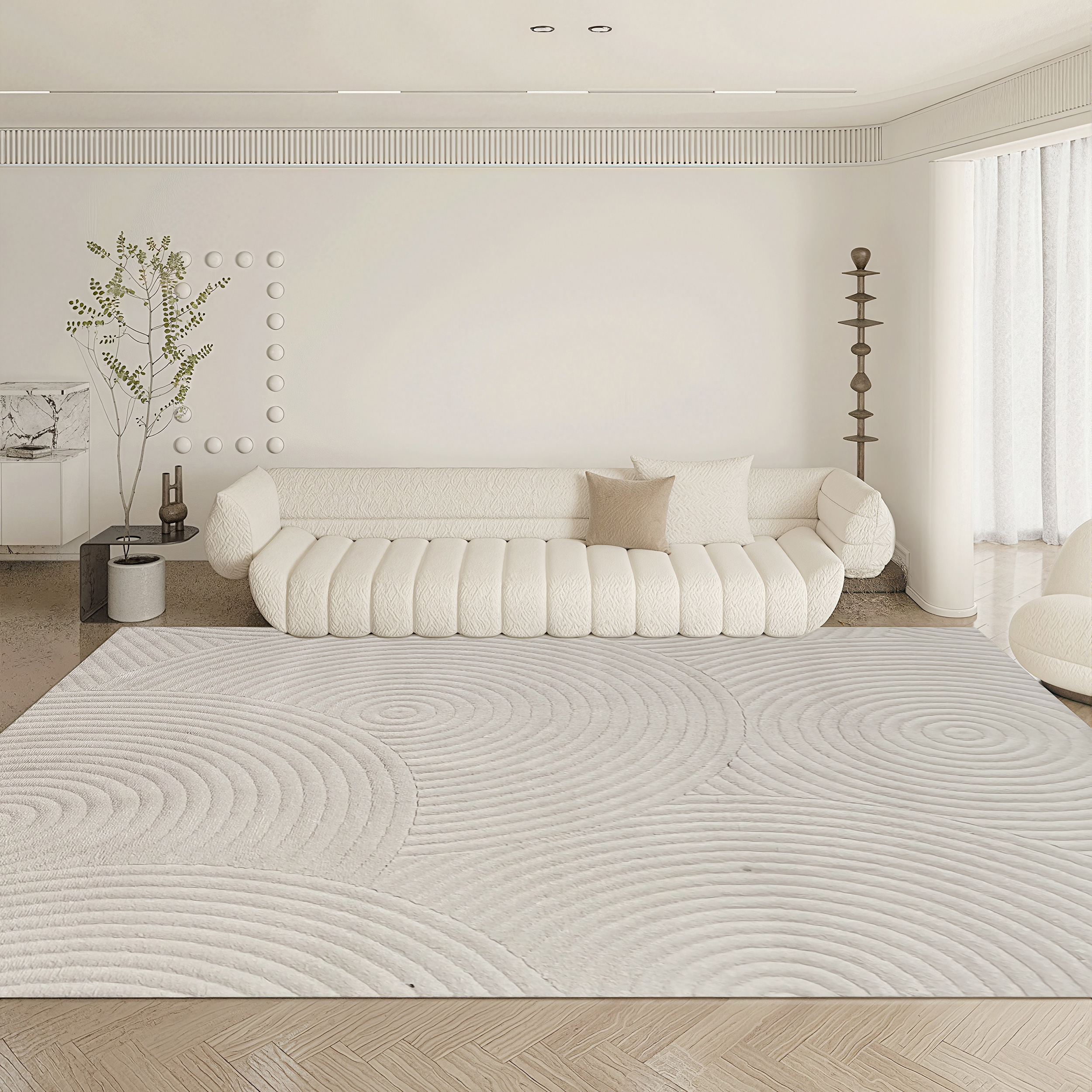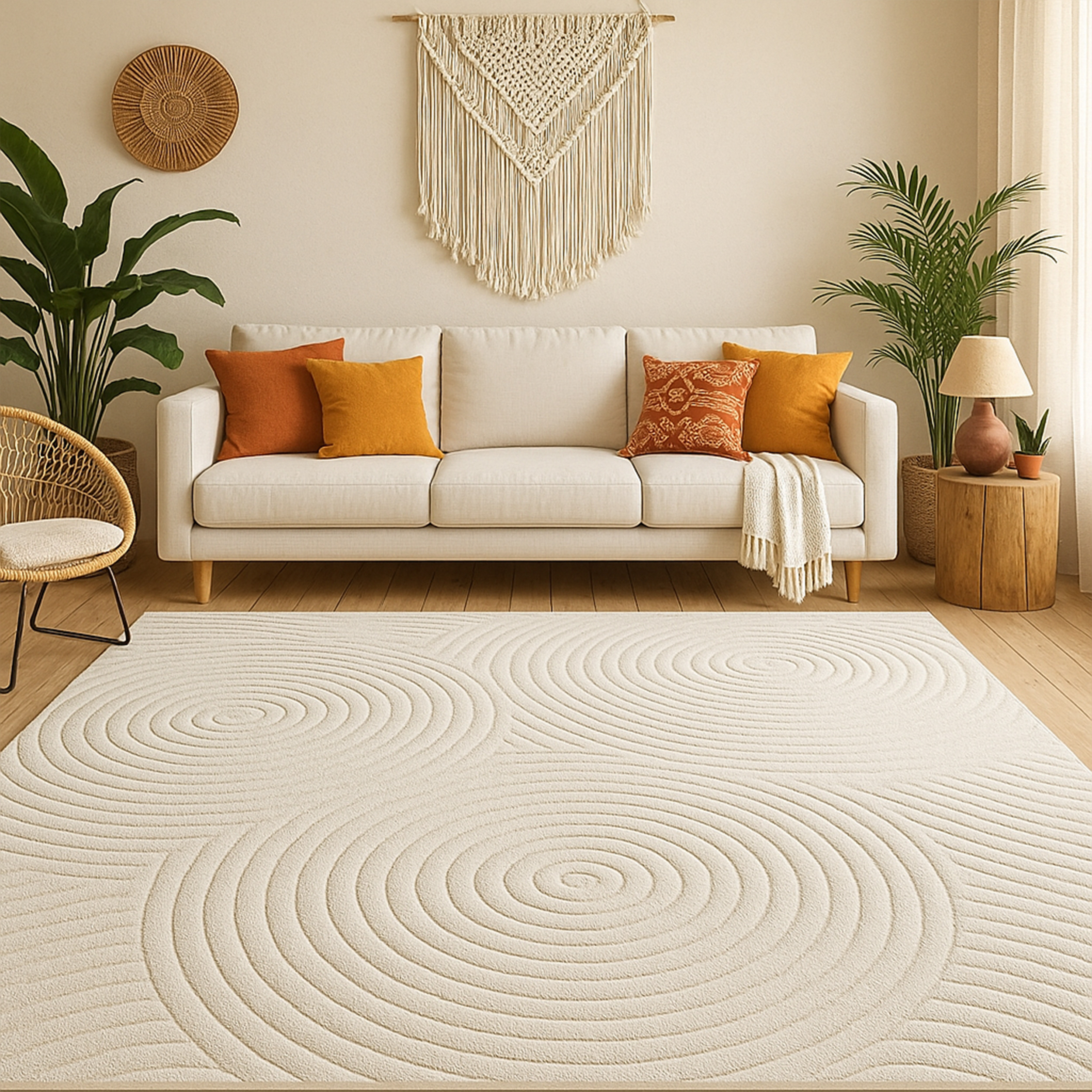 - Duży format dywanu idealnie wypełnia otwarte przestrzenie, wydzielając strefę relaksu.