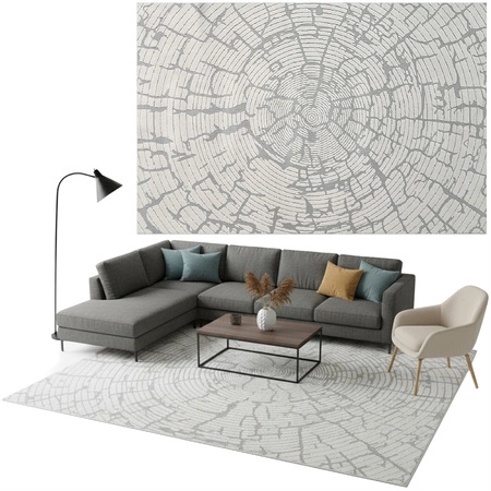 - Duży, koncentryczny wzór pomaga wydzielić strefę wypoczynku.