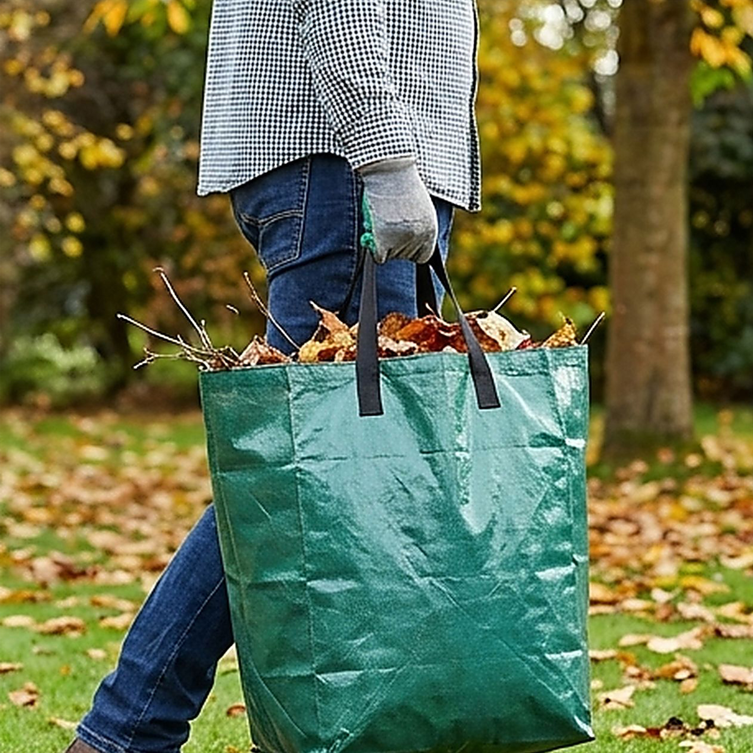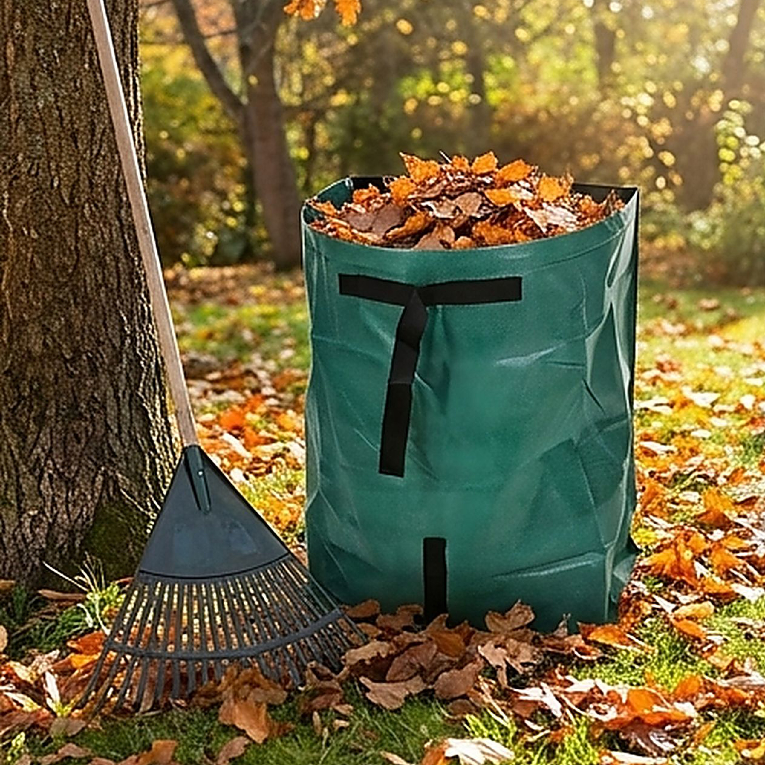 Produkt wyposażono w solidne uchwyty, które ułatwiają transportowanie nawet pełnego worka. Po złożeniu zajmuje on bardzo mało miejsca, co pozwala na wygodne przechowywanie go w garażu czy schowku na narzędzia.