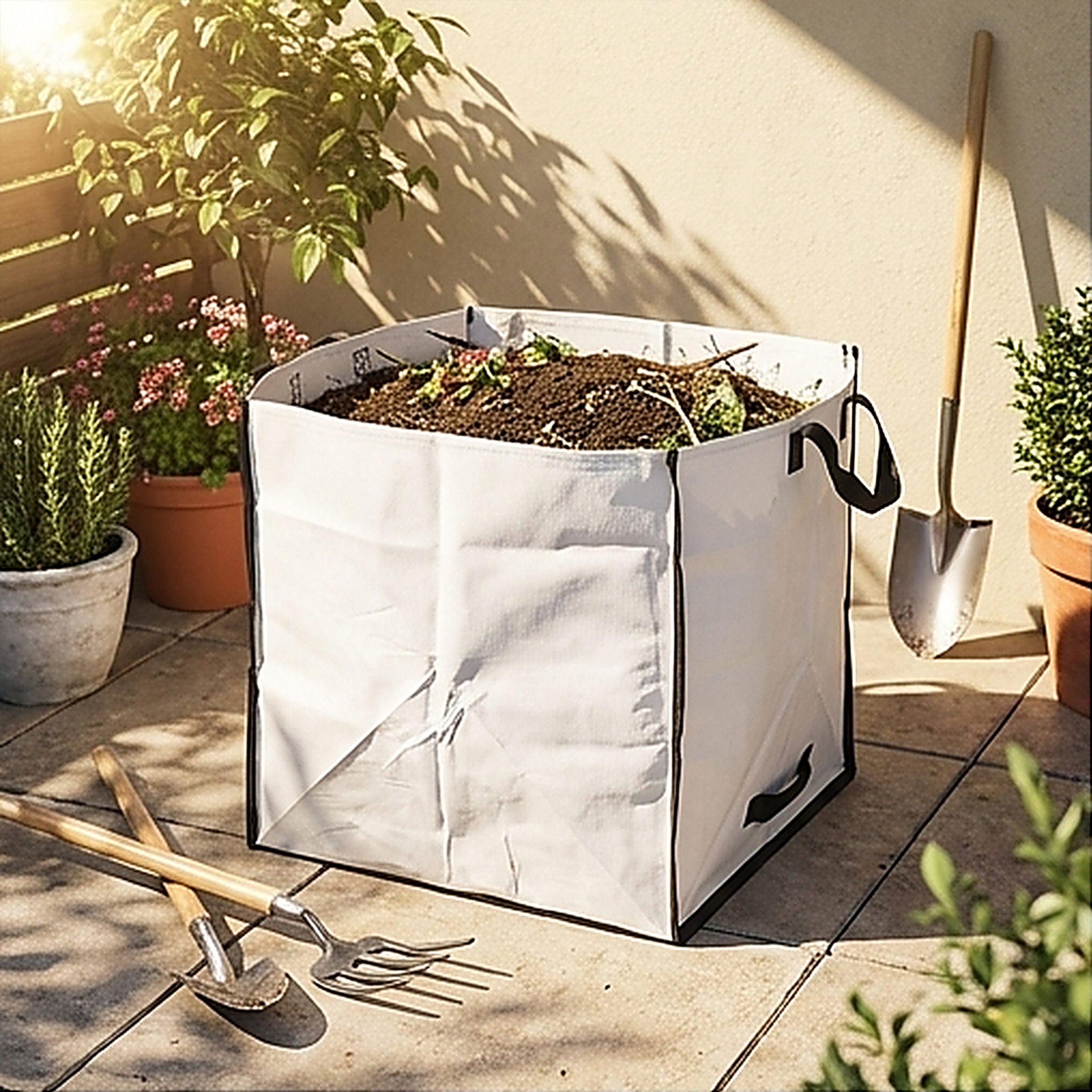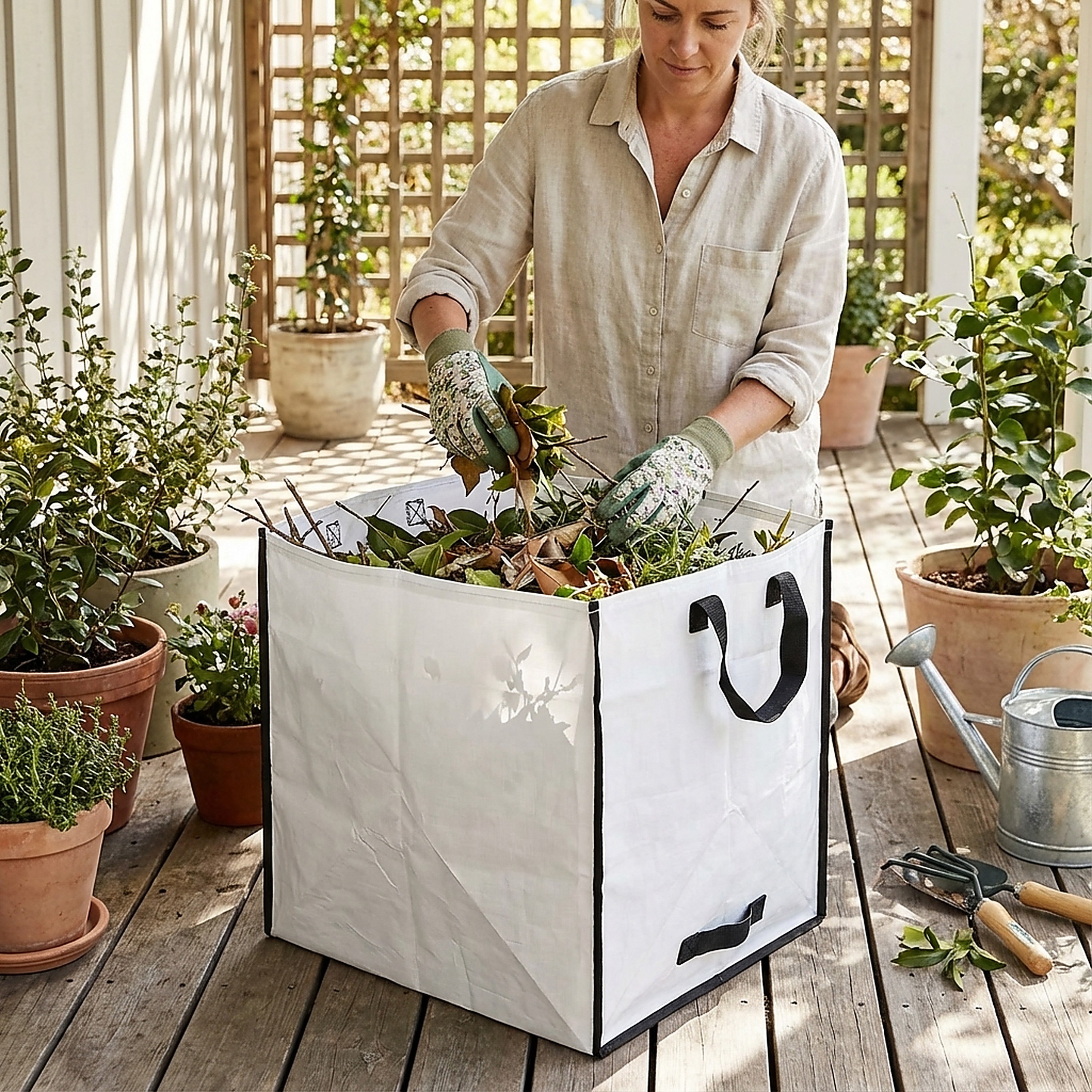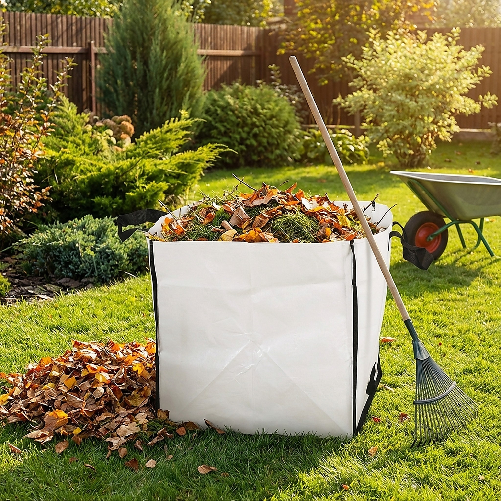 Worek na odpady to doskonała pomoc dla każdego ogrodnika. Znacznie przyspiesza prace porządkowe w ogrodzie, na tarasie czy balkonie. Niezastąpiony jesienią przy grabieniu liści oraz wiosną przy przycinaniu krzewów i koszeniu trawnika. Dzięki estetycznemu wykonaniu i uniwersalnemu kształtowi sześcianu, łatwo go ustawić i napełnić.