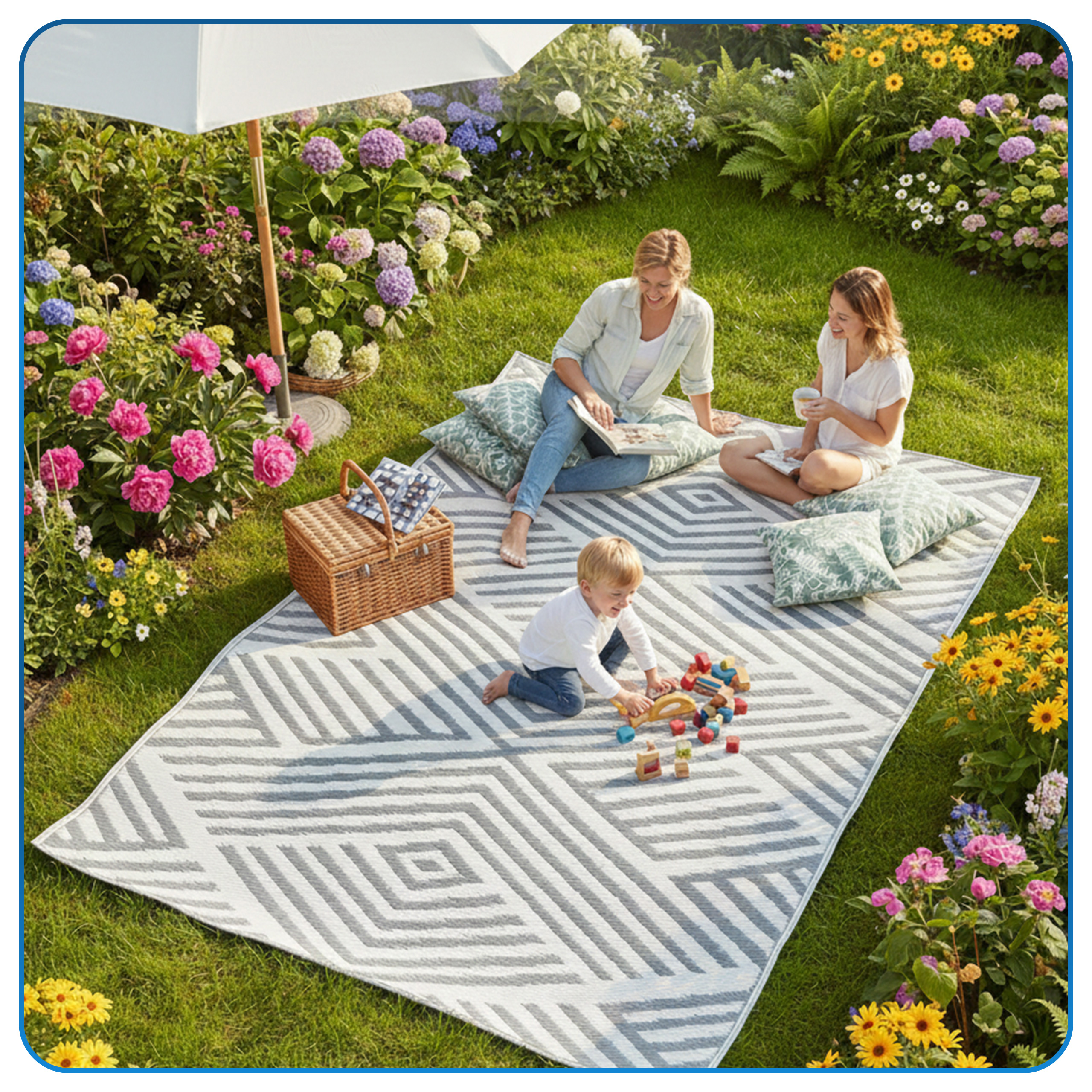 Ten dywan zewnętrzny to prosty sposób na szybką metamorfozę balkonu, tarasu lub ogrodu. Dzięki niemu przestrzeń staje się bardziej przytulna, estetyczna i gotowa do relaksu. Wodoodporny i szybkoschnący materiał sprawia, że dywan doskonale radzi sobie w codziennym użytkowaniu na świeżym powietrzu, a jednocześnie świetnie prezentuje się również we wnętrzach. To praktyczny dodatek, który łączy funkcjonalność z modnym wyglądem.