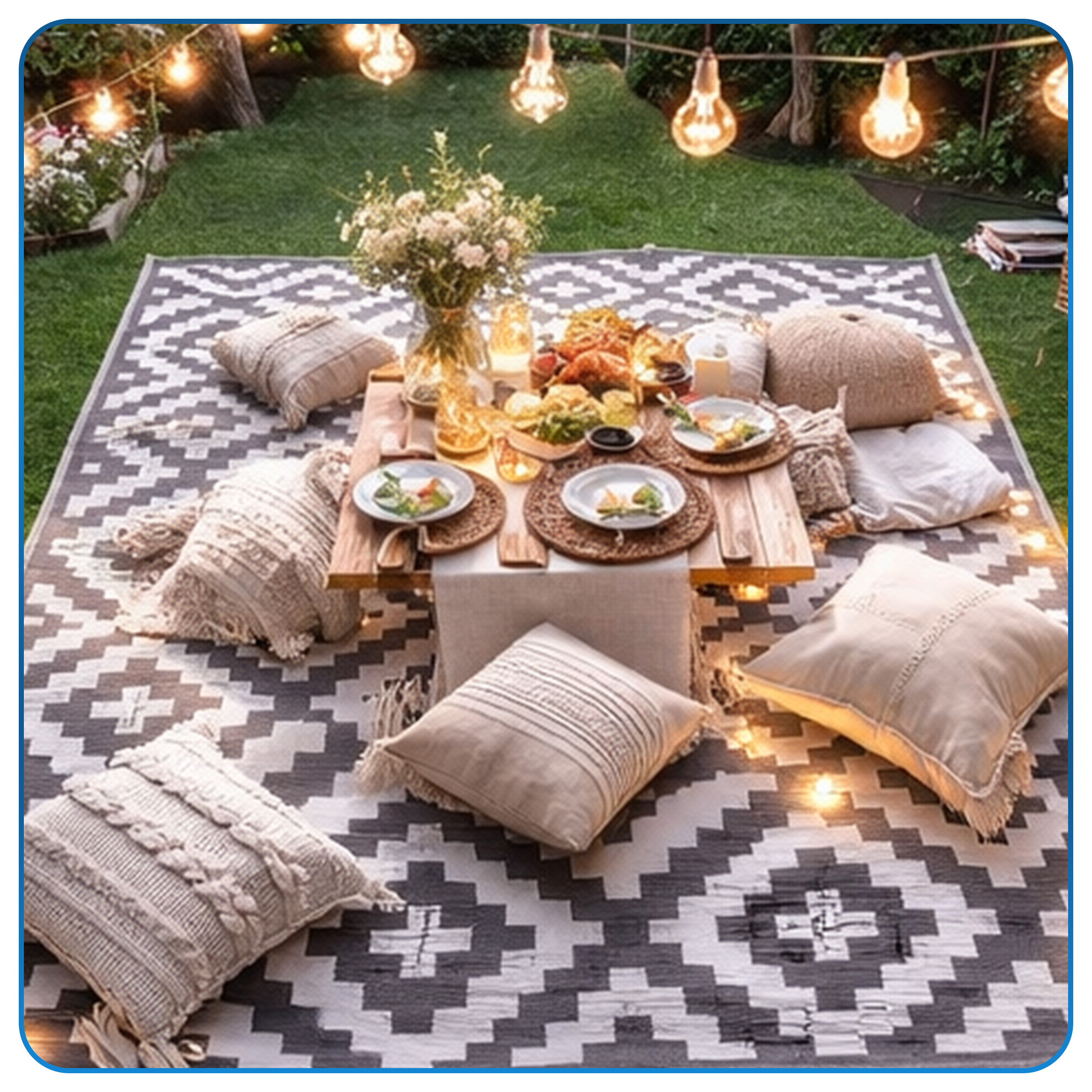 Ten dywan zewnętrzny to prosty sposób na szybką metamorfozę balkonu, tarasu lub ogrodu. Dzięki niemu przestrzeń staje się bardziej przytulna, estetyczna i gotowa do relaksu. Wodoodporny i szybkoschnący materiał sprawia, że dywan doskonale radzi sobie w codziennym użytkowaniu na świeżym powietrzu, a jednocześnie świetnie prezentuje się również we wnętrzach. To praktyczny dodatek, który łączy funkcjonalność z modnym wyglądem.