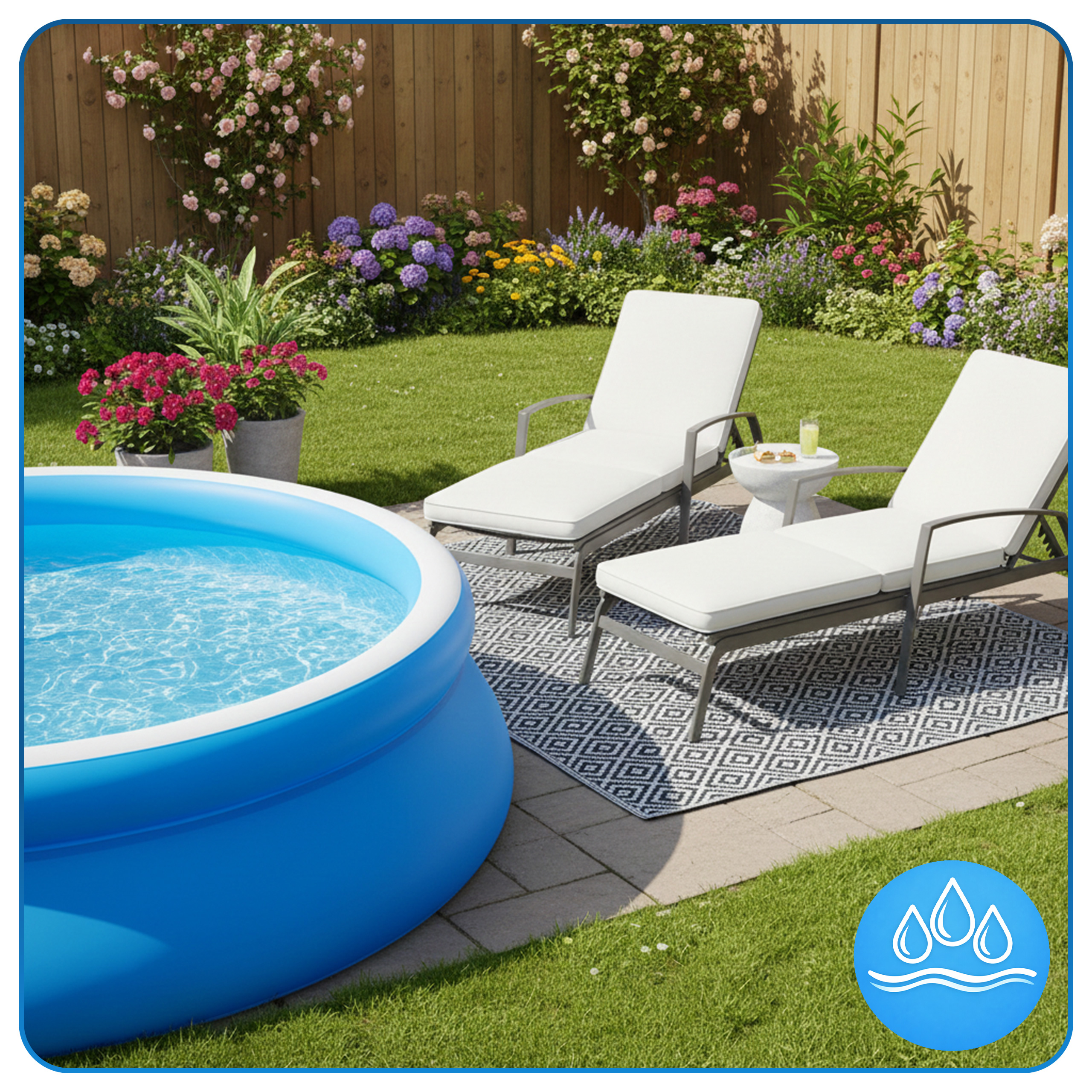 Ten dywan zewnętrzny to prosty sposób na szybką metamorfozę balkonu, tarasu lub ogrodu. Dzięki niemu przestrzeń staje się bardziej przytulna, estetyczna i gotowa do relaksu. Wodoodporny i szybkoschnący materiał sprawia, że dywan doskonale radzi sobie w codziennym użytkowaniu na świeżym powietrzu, a jednocześnie świetnie prezentuje się również we wnętrzach. To praktyczny dodatek, który łączy funkcjonalność z modnym wyglądem.