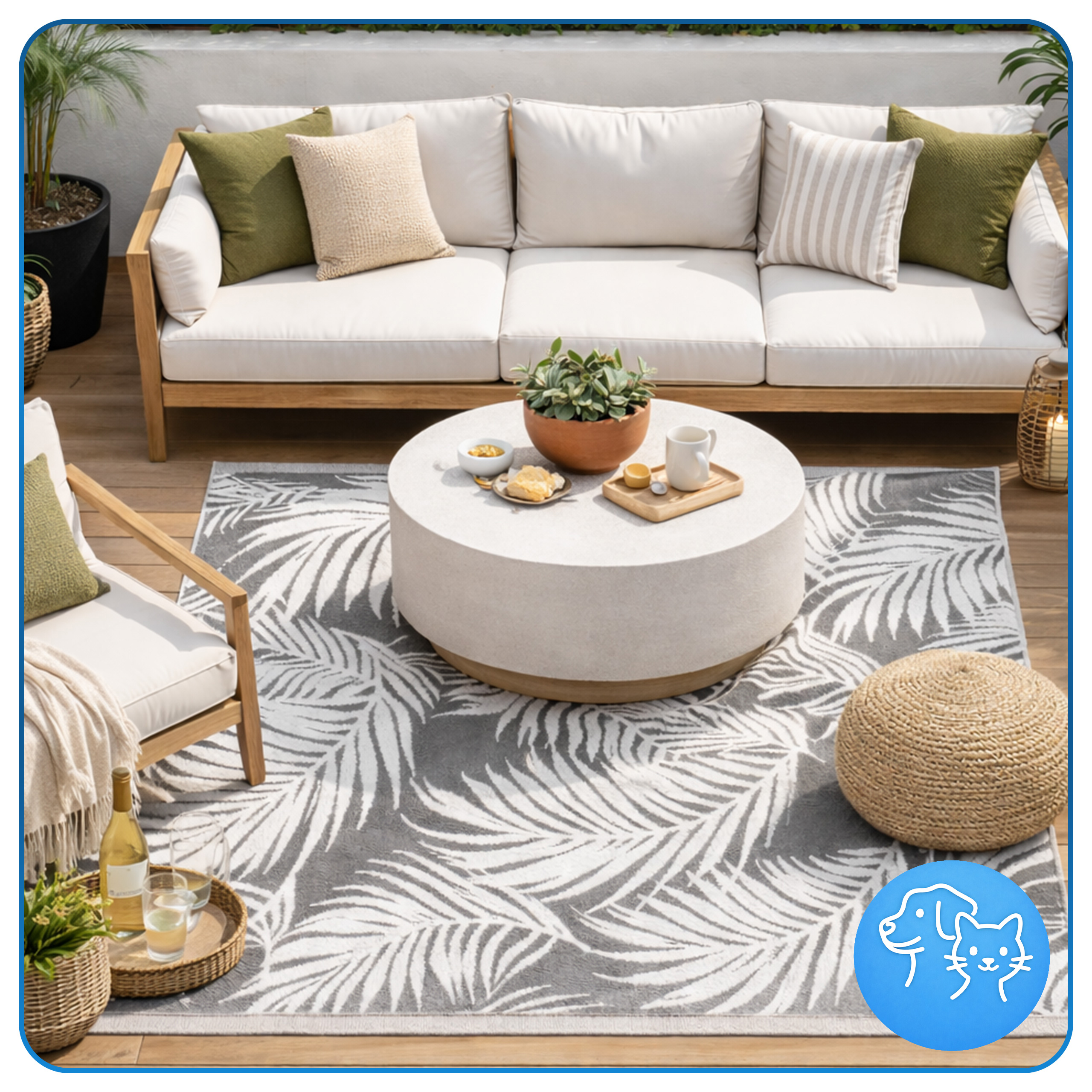 Ten dywan zewnętrzny to prosty sposób na szybką metamorfozę balkonu, tarasu lub ogrodu. Dzięki niemu przestrzeń staje się bardziej przytulna, estetyczna i gotowa do relaksu. Wodoodporny i szybkoschnący materiał sprawia, że dywan doskonale radzi sobie w codziennym użytkowaniu na świeżym powietrzu, a jednocześnie świetnie prezentuje się również we wnętrzach. To praktyczny dodatek, który łączy funkcjonalność z modnym wyglądem.