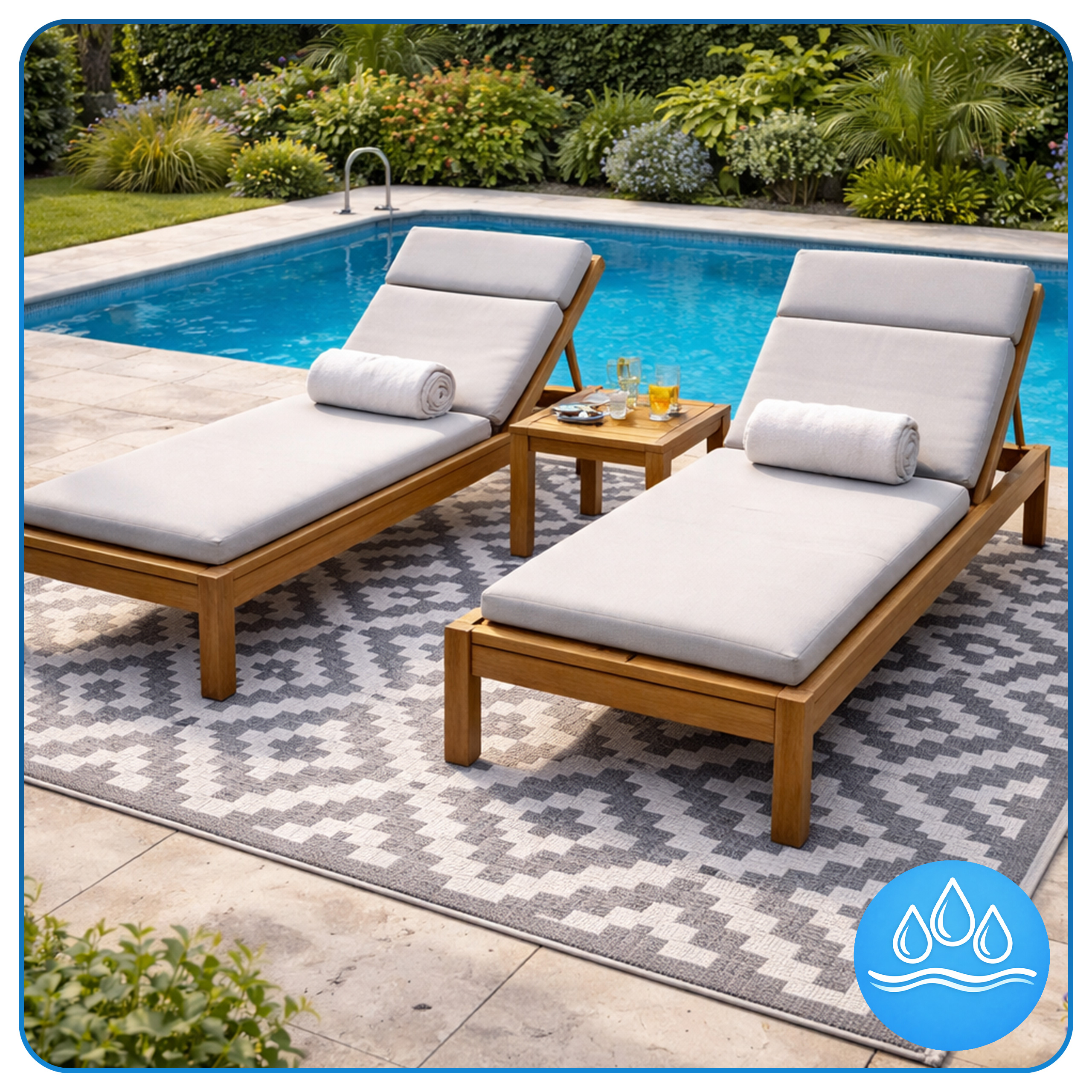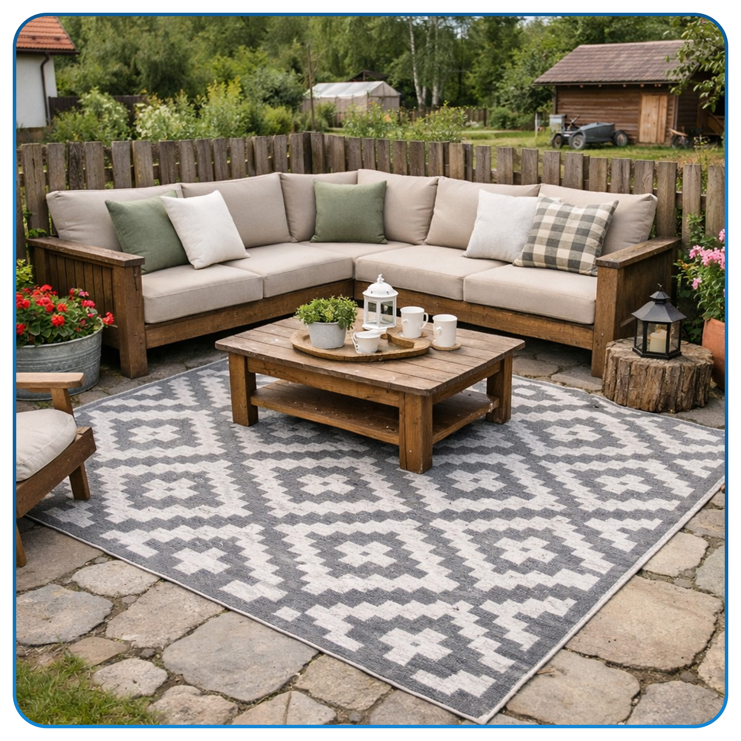 Ten dywan zewnętrzny to prosty sposób na szybką metamorfozę balkonu, tarasu lub ogrodu. Dzięki niemu przestrzeń staje się bardziej przytulna, estetyczna i gotowa do relaksu. Wodoodporny i szybkoschnący materiał sprawia, że dywan doskonale radzi sobie w codziennym użytkowaniu na świeżym powietrzu, a jednocześnie świetnie prezentuje się również we wnętrzach. To praktyczny dodatek, który łączy funkcjonalność z modnym wyglądem.