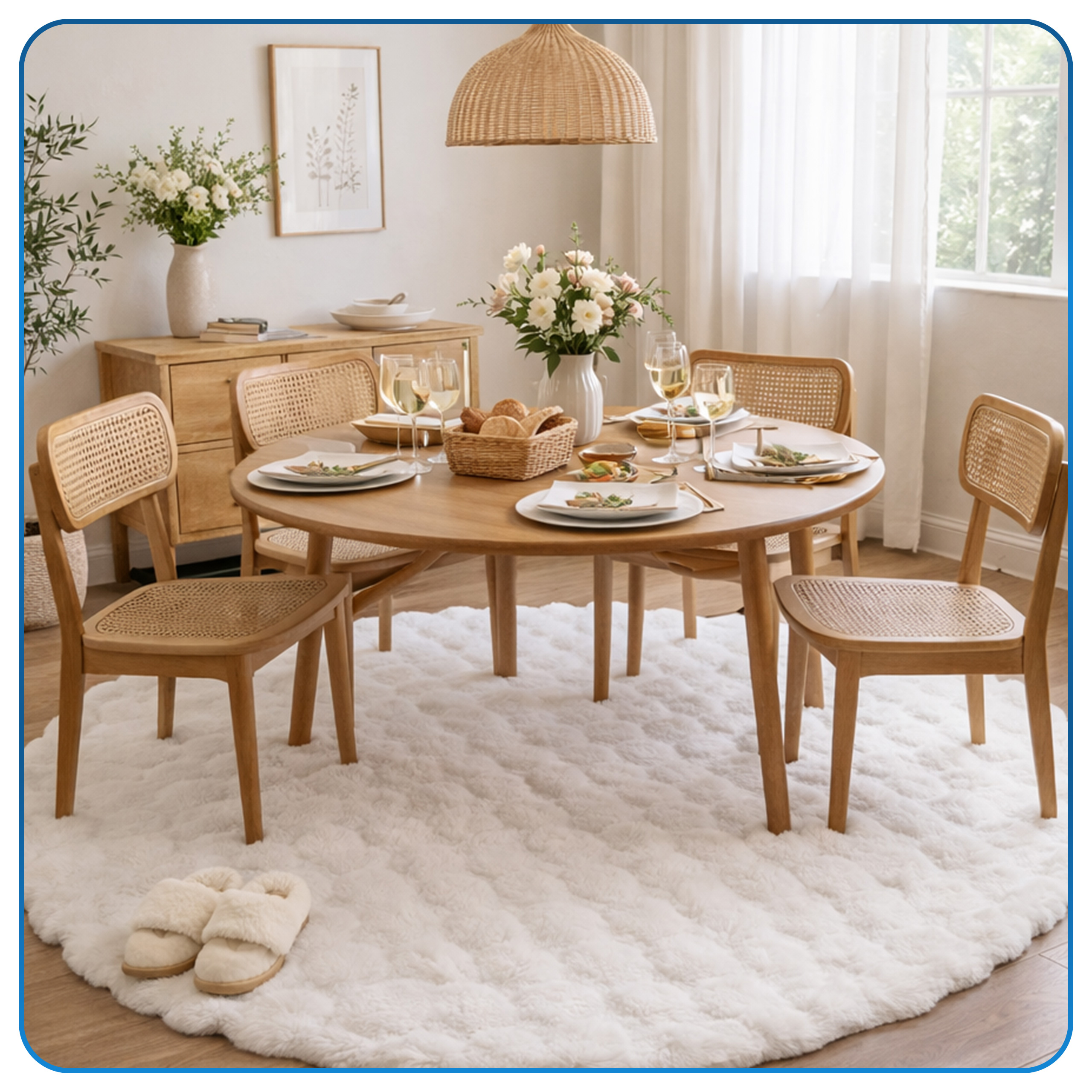 Dzięki swojej formie i uniwersalnemu zastosowaniu dywan sprawdzi się w mieszkaniach urządzonych nowocześnie, skandynawsko, japandi czy contemporary. To doskonały wybór dla osób, które szukają produktu łączącego modny wygląd, wygodę i praktyczne zastosowanie.