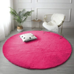 Dywan Okrągły Rabbit futro królika antypoślizgowy miękki loft 90x90, różowy